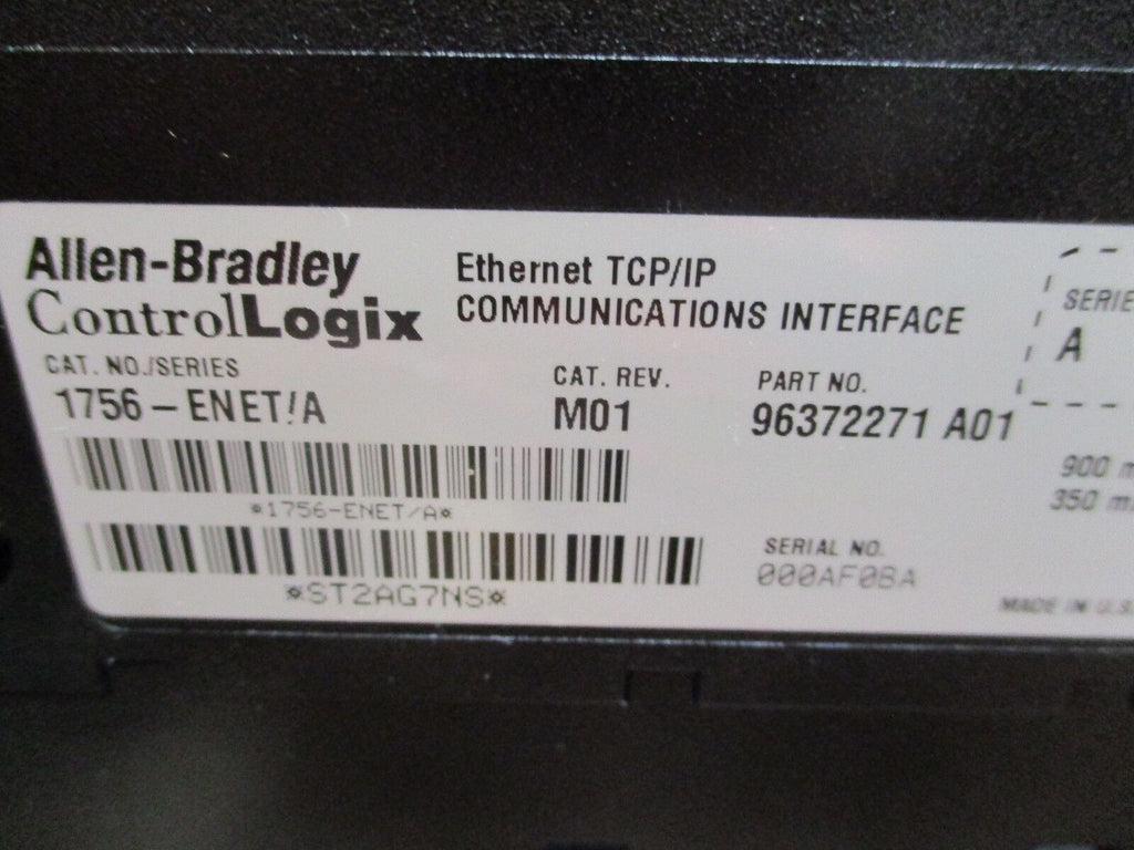 Allen-Bradley ControlLogix Ethernet TCP/IP Comm Interface 1756-ENET/A Used Condition: UsedMPN: 1756-ENET/ABrand: Allen-BradleyController Platform: ControlLogix Allen-Bradley ControlLogix Ethernet TCP/IP Comm Interface 1756-ENET/A Used Allen-Bradley ControlLogix Ethernet TCP/IP Comm InterfacePart # 1756-ENET/A CAT Rev. M01F/W Rev. 1.18UsedLOC 18C5-14 / 11I2-45 Allen-Bradley ControlLogix Ethernet TCP/IP Comm Interface Part # 1756-ENET/A CAT Rev. M01 F/W Rev. 1.18 Uséd LOC 18C5-14 / 11I2-45