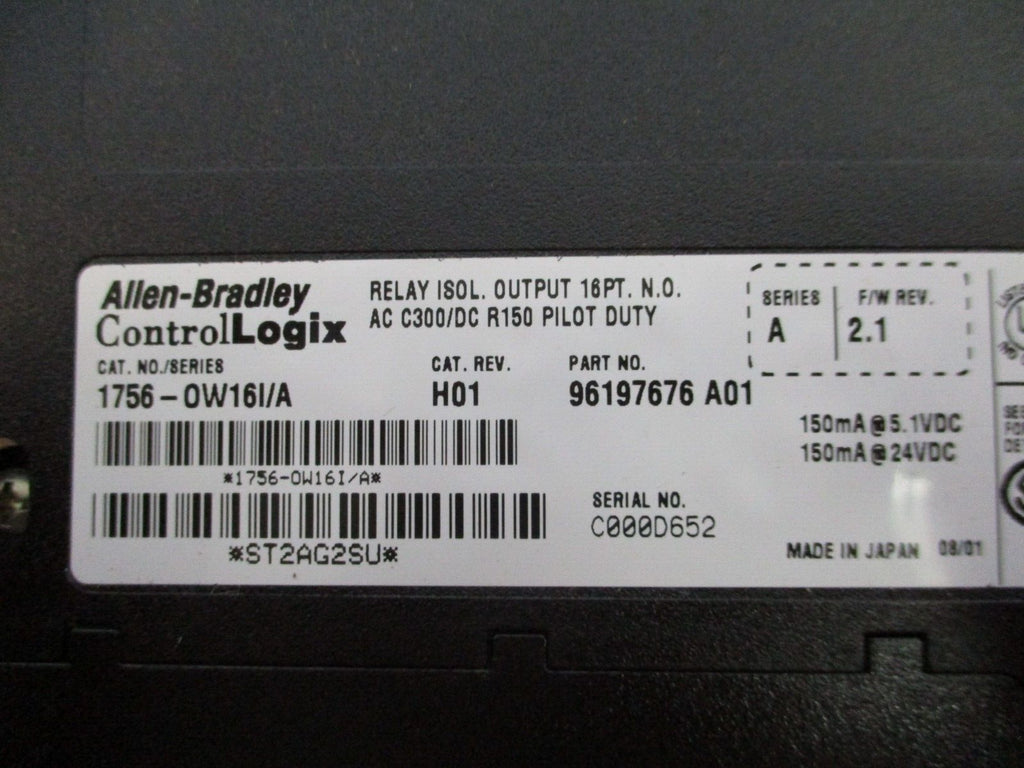 Allen-Bradley ControlLogix Relay Isolated Output Module Part #: 1756-OW16I Ser. A Rev. H01 F/W Rev: 2.1 16PT N.O. Used Loc: 16K3-100