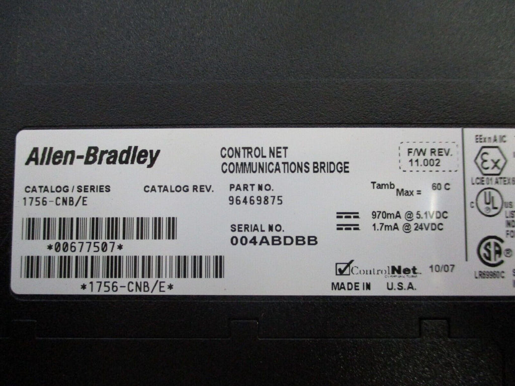 Allen-Bradley ControlNet Comm. Bridge Module Part #: 1756-CNB Ser. E F/W Rev. 11.002 Used Loc: 11C2-51