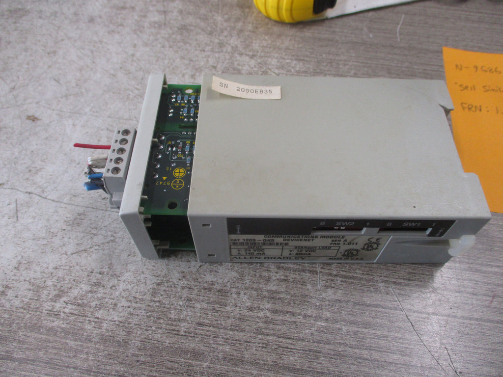 Allen-Bradley DeviceNet Comm. Module 1203-GK5 Ser. A FRN: 1.011 Input: 24VDC 140mA Scanport Load: 12VDC 60mA *Broken Face Clips* Used LOC 58H3-24