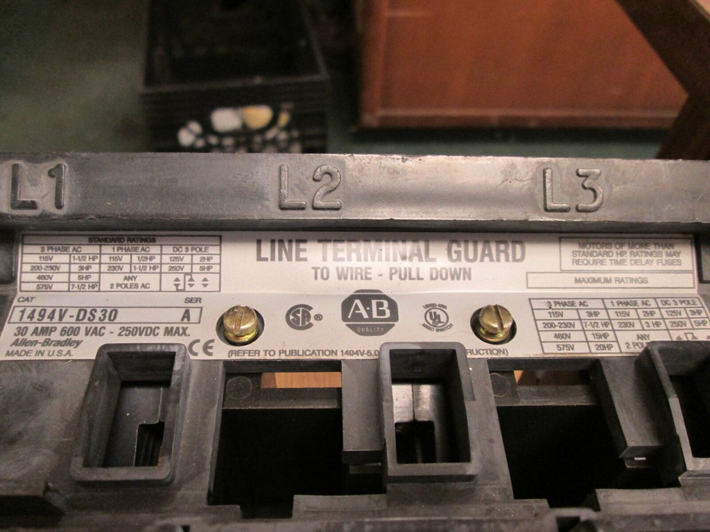 Allen-Bradley Disconnect Switch Line Terminal Guard 1494V-DS30 No Control Arm_x000D_ Condition: UsedBrand: Allen-BradleyCustom Bundle: No Allen-Bradley Disconnect Switch Line Terminal Guard 1494V-DS30 No Control Arm Allen-Bradley Disconnect Switch Line Terminal Guard 1494V-DS30 30A 600V 3P Used - No Control ArmLOC# 11H3-6 Allen-Bradley Disconnect Switch Line Terminal Guard 1494V-DS30 30A 600V 3P Uséd - No Control Arm LOC# 11H3-6