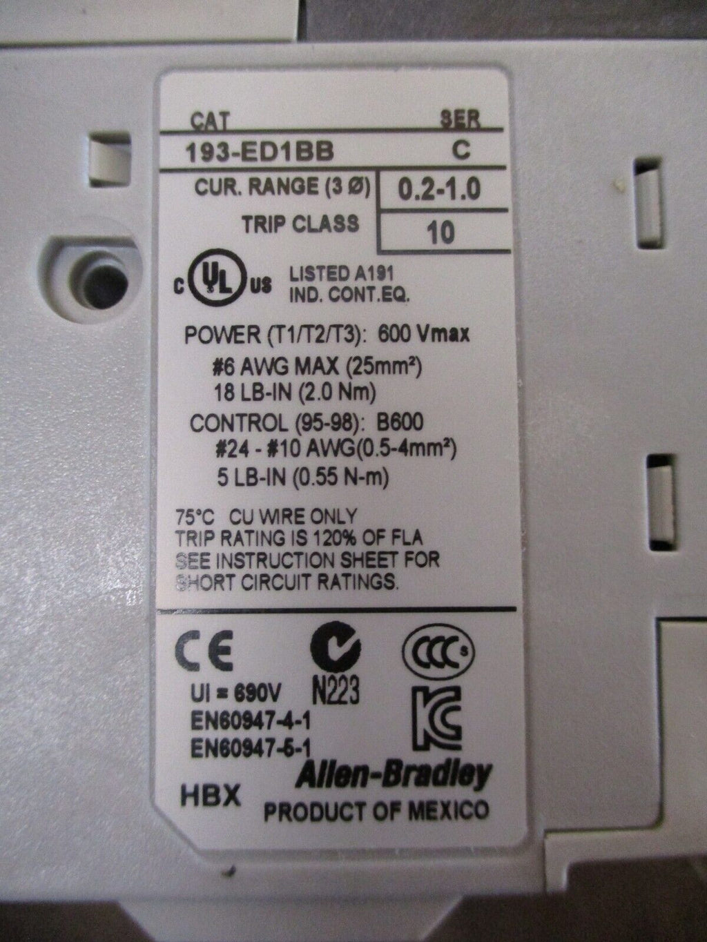 Allen-Bradley E1 Plus Solid State Overload 193-ED1BB Ser. C Trip: 0.2-1.0A