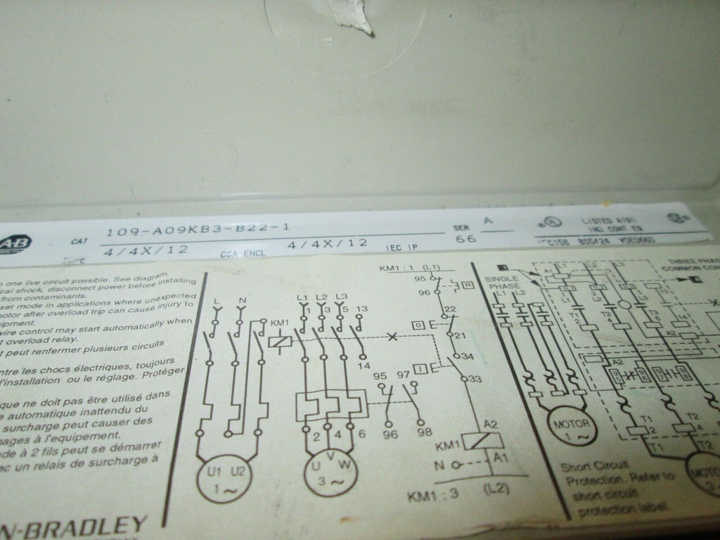 Allen-Bradley Enclosed Contactor 100-A12NB13 Solid State Overload 480V Coil Used Condition: UsedBrand: Allen-BradleyModel: Enclosed ContactorMPN: 100-A12NB13 Allen-Bradley Enclosed Contactor 100-A12NB13 Solid State Overload 480V Coil Used Allen-Bradley Enclosed Contactor 100-A12NB13 w/ Solid State Overload 480V Coil UsedLOC# 17J1-5 Allen-Bradley Enclosed Contactor 100-A12NB13 w/ Solid State Overload 480V Coil Uséd LOC# 17J1-5