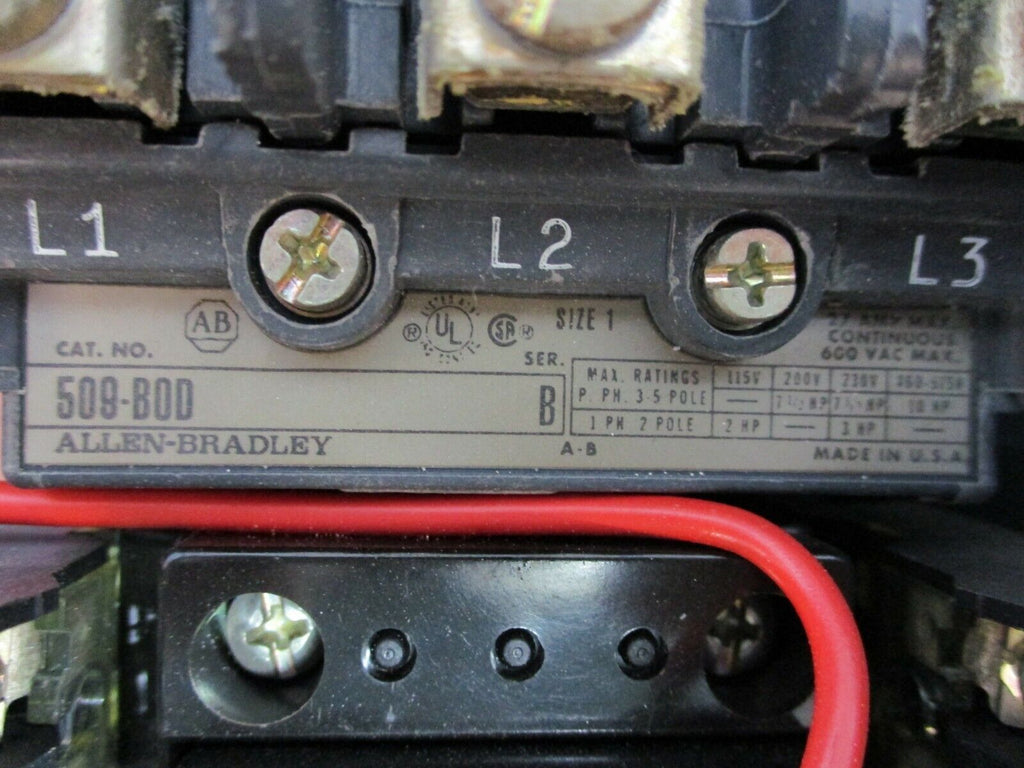 Allen- Bradley, Enclosed Size 0 Starter, part#: 509-AAH-3-4R-6-90, 115-120V coil Condition: UsedType: Starter CoilMPN: 509-AAH-3-4R-6-90Brand: Allen- Bradley Allen- Bradley, Enclosed Size 0 Starter, part#: 509-AAH-3-4R-6-90, 115-120V coil Allen- BradleyEnclosed size 0 StarterPart #: 509-AAH-3-4R-6-90115-120V coil18A600VUsedLoc 16C3-11 Allen- BradleyEnclosed size 0 Starter Part #: 509-AAH-3-4R-6-90 115-120V coil 18A 600V Uséd Loc 16C3-11