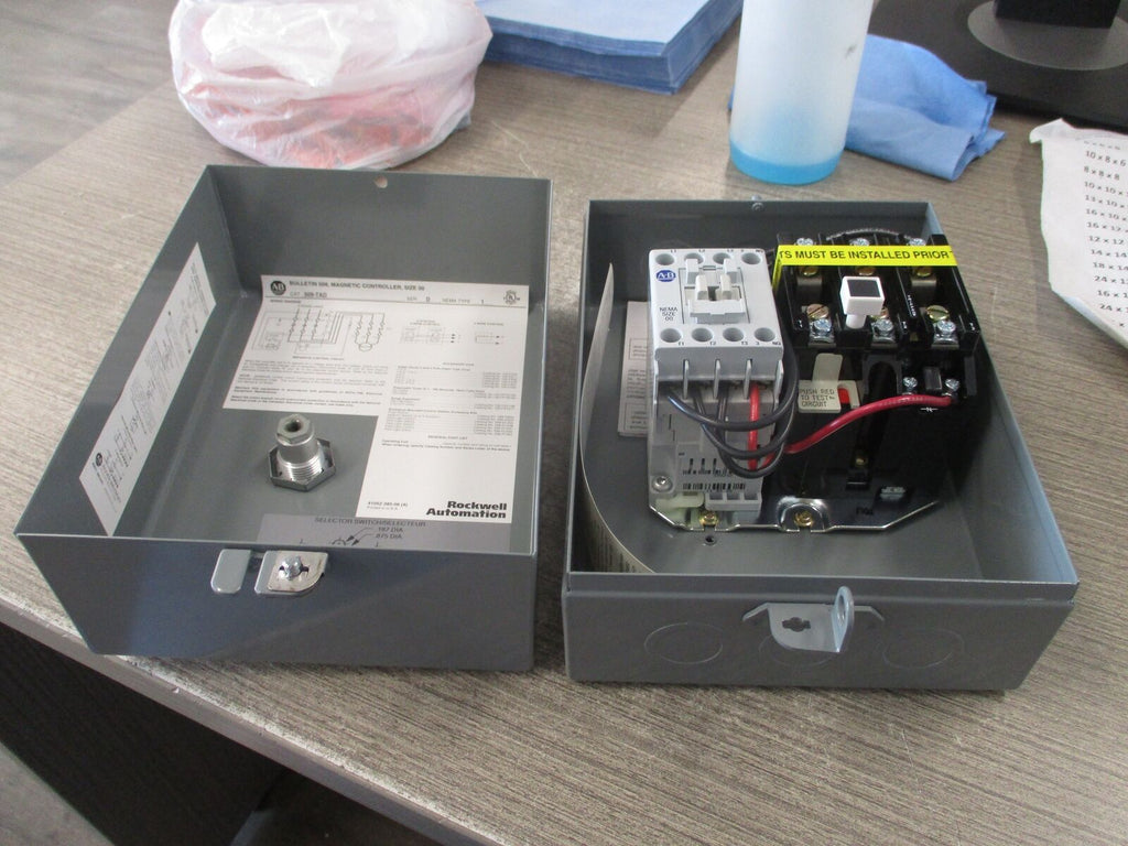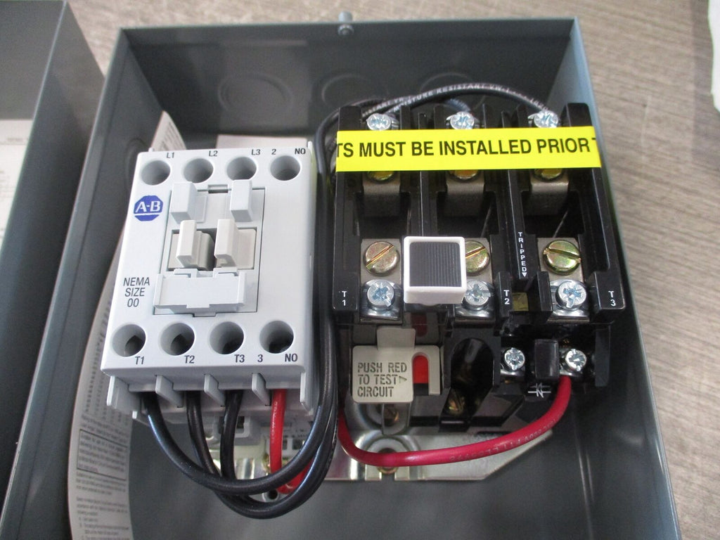 Allen-Bradley Enclosed Size 00 Starter 509-TAD Ser. D 115-120V Coil 3Ph Type 1 Enclosure New Surplus_x000D_ Allen-Bradley Enclosed Size 00 Starter 509-TAD Ser. D 115-120V Coil 3Ph Type 1 Enclosure New Surplus LOC 60A2-1