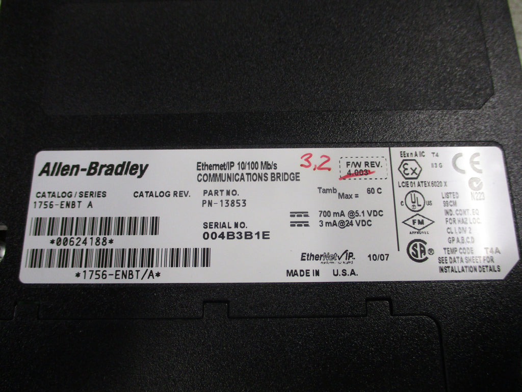 Allen-Bradley Ethernet I/P Comm. Bridge Module 1756-ENBT Ser. A F/W Rev. 3.2
