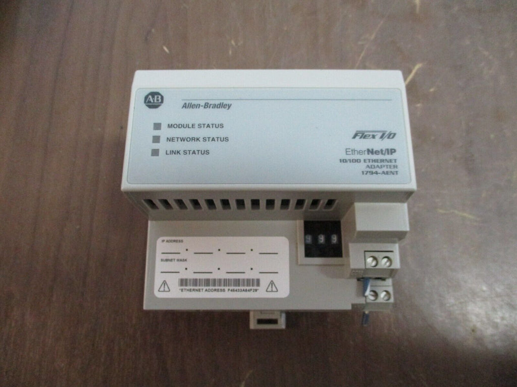 Allen-Bradley Flex EtherNet/IP Adapter 1794-AENT Ser. B F/W: 4.3 Used Condition: UsedBrand: Allen-BradleyMPN: 1794-AENTModel: Allen-Bradley 1794-AENTType: PLC Processor Module Allen-Bradley Flex EtherNet/IP Adapter 1794-AENT Ser. B F/W: 4.3 Used Allen-Bradley Flex EtherNet/IP Adapter Part #: 1794-AENT Ser. B F/W: 4.3 Used Loc: 10K5-31 Allen-Bradley Flex EtherNet/IP Adapter Part #: 1794-AENT Ser. B F/W: 4.3 Uséd Loc: 10K5-31