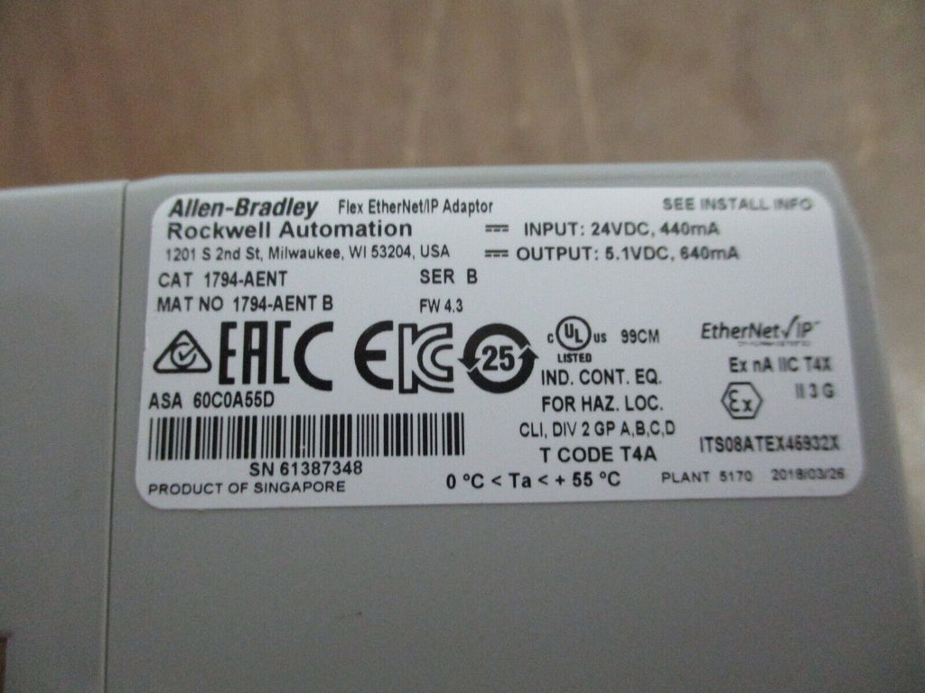 Allen-Bradley Flex EtherNet/IP Adapter 1794-AENT Ser. B F/W: 4.3 Used