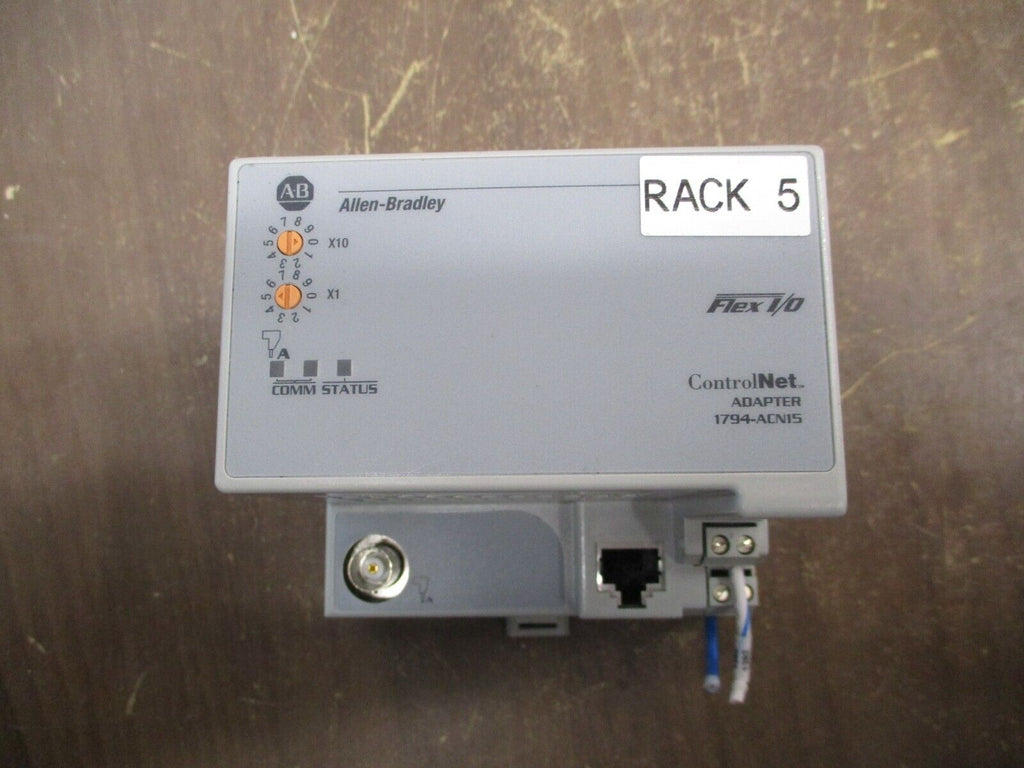 Allen-Bradley Flex I/O ControlNet Adapter Module Part #: 1794-ACN15 Ser. D F/W Rev. 10.3 Used Loc: 28L2-26- Part #: 1794-ACN15