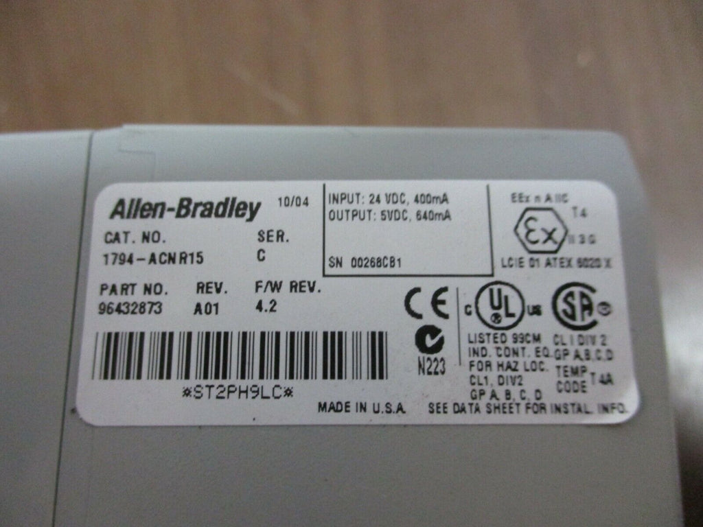 Allen-Bradley Flex I/O ControlNet Redundent Media Adaptor 1794-ACNR15 Rev. A01 Condition: UsedModel: Allen-Bradley 1794-ACNR15MPN: 1794-ACNR15Brand: Allen-Bradley Allen-Bradley Flex I/O ControlNet Redundent Media Adaptor 1794-ACNR15 Rev. A01 Allen-Bradley Flex I/O ControlNet Redundent Media Adaptor Model#: 1794-ACNR15 Ser. C Rev. A01F/W Rev. 4.2 Used loc: 11B5-15 Allen-Bradley Flex I/O ControlNet Redundent Media Adaptor Model#: 1794-ACNR15 Ser. C Rev. A01 F/W Rev. 4.2 Uséd loc: 11B5-15
