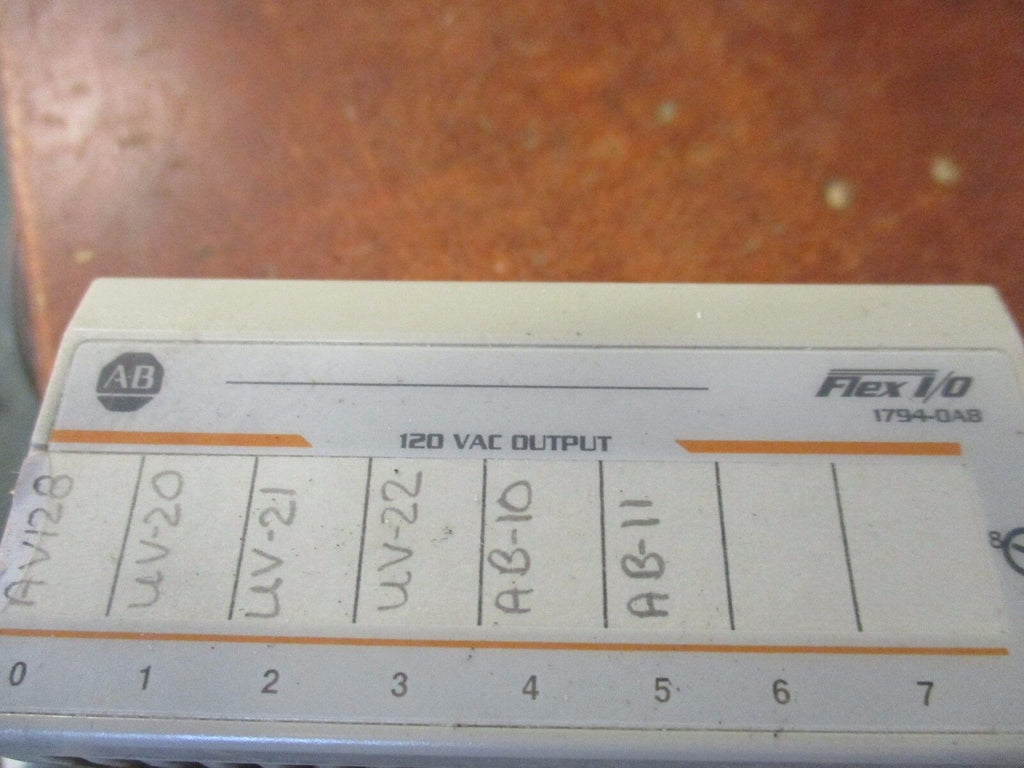 Allen-Bradley Flex I/O Input Module 1794-OA8 120VAC Used_x000D_ Condition: UsedMPN: 1794-OA8Brand: Allen-Bradley Allen-Bradley Flex I/O Input Module 1794-OA8 120VAC Used Allen-Bradley Flex I/O Input Module Part # 1794-OA8 120VAC UsedLOC 10E5-15 Allen-Bradley Flex I/O Input Module Part # 1794-OA8 120VAC Uséd LOC 10E5-15