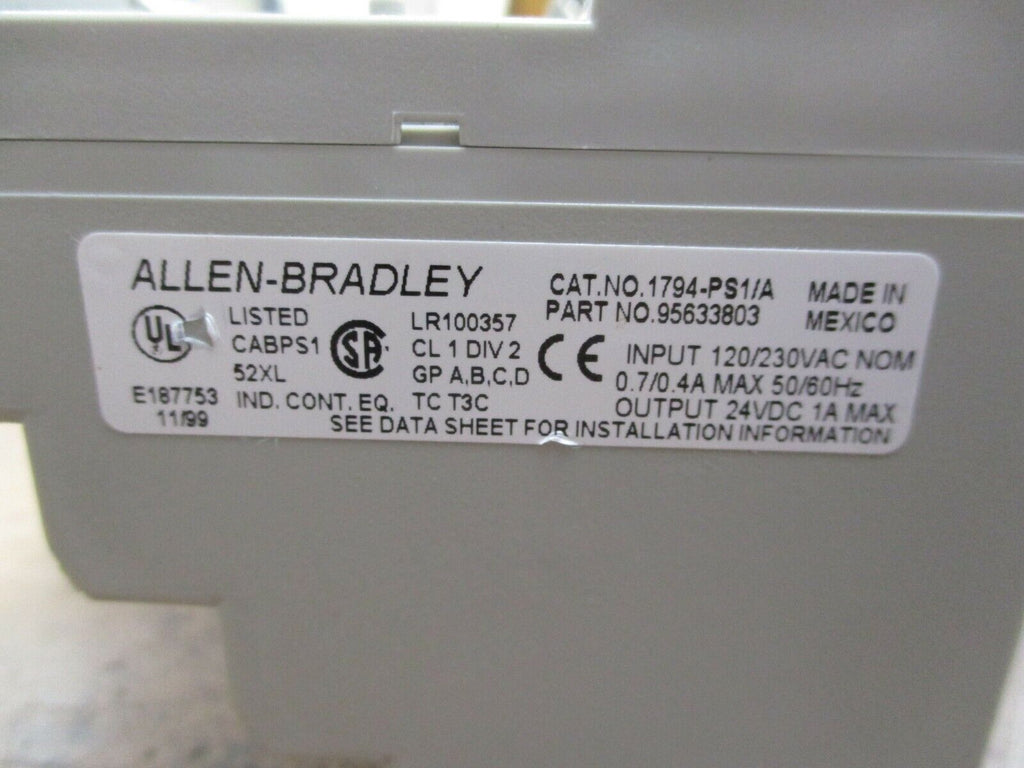 Allen-Bradley Flex I/O Power Supply 1794-PSI/A Output: 24VDC, 1A Used_x000D_ Condition: UsedMPN: 1794-PSI/ABrand: Allen-Bradley Allen-Bradley Flex I/O Power Supply 1794-PSI/A Output: 24VDC, 1A Used Allen-Bradley Flex I/O Power SupplyPart #: 1794-PSI/A Input:120/230VAC0.7 / 0.4A50/60HzOutput: 24VDC1A UsedLOC 16B3-21 Allen-Bradley Flex I/O Power Supply Part #: 1794-PSI/A Input: 120/230VAC 0.7 / 0.4A 50/60Hz Output: 24VDC 1A Uséd LOC 16B3-21