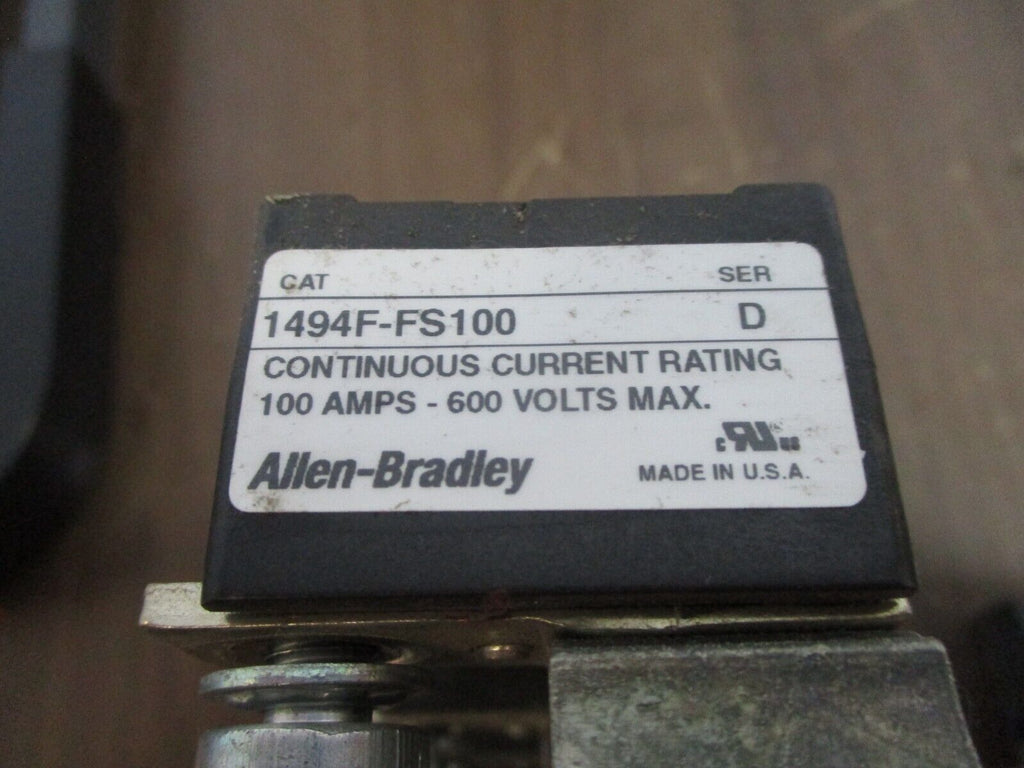 Allen-Bradley Fuses Holder w/ Fuses 1494F-FS100 Ser. D 100A 600V Used