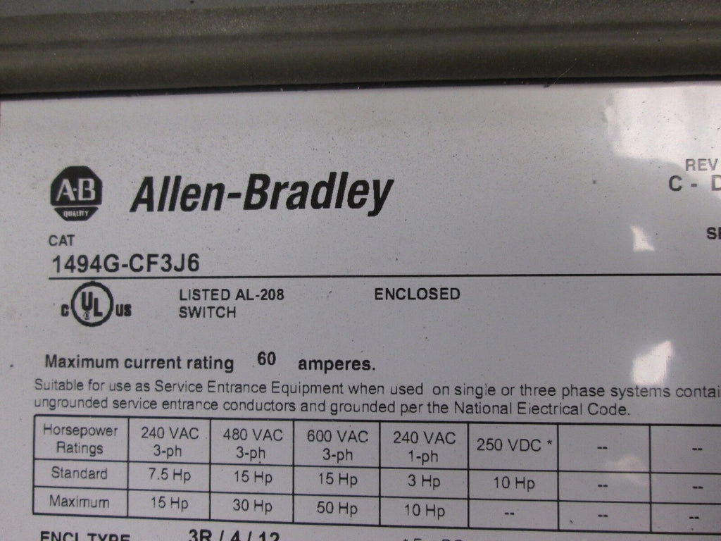 Allen-Bradley Fusible 3R Safety Switch 1494G-CF3J6 60A 3P Enclosure:3R/4/12 Used