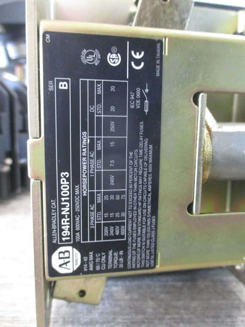 Allen-Bradley Fusible Disconnect Switch 194R-NJ100P3 Ser. B 100A 600V 3Ph Used