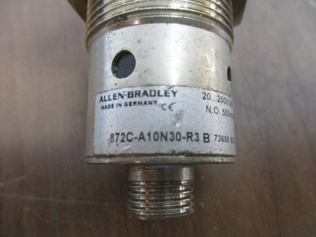 Allen-Bradley Inductive Proximity Sensor Part #: 872C-A10N30-R3 Ser. B20-250 VAC 500mA Used Loc: 18C4-41- Part #: 872C-A10N30-R3
