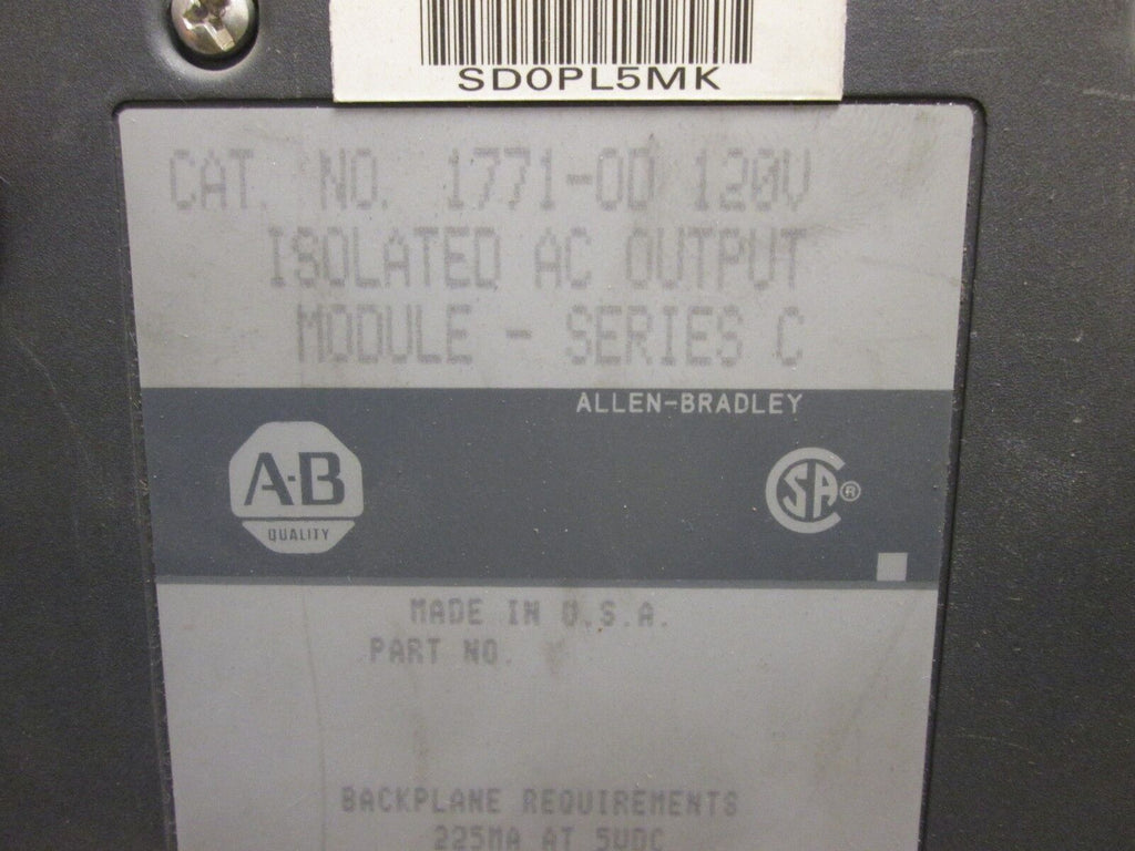 Allen-Bradley Isolated AC Output 1771-OD Used_x000D_ Condition: UsedBrand: Allen-BradleyModel: Isolated AC OutputMPN: 1771-OD Allen-Bradley Isolated AC Output 1771-OD Used Allen-Bradley Isolated AC Output 1771-ODCondition: UsedLoc: 13c3-31 Allen-Bradley Isolated AC Output 1771-OD Condition: Uséd Loc: 13c3-31