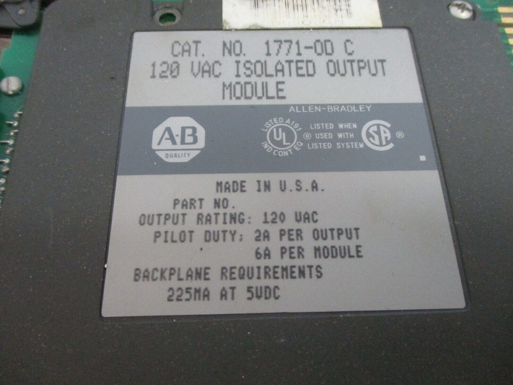 Allen-Bradley Isolated AC Output Module 1771-OD C Used_x000D_ Condition: UsedModel: Allen-Bradley 1771-OD CMPN: 1771-OD CBrand: Allen-BradleyType: PLC Output Module Allen-Bradley Isolated AC Output Module 1771-OD C Used Allen-Bradley Isolated AC Output Module Part #: 1771-OD C Used Loc: 13G2-56 Allen-Bradley Isolated AC Output Module Part #: 1771-OD C Uséd Loc: 13G2-56