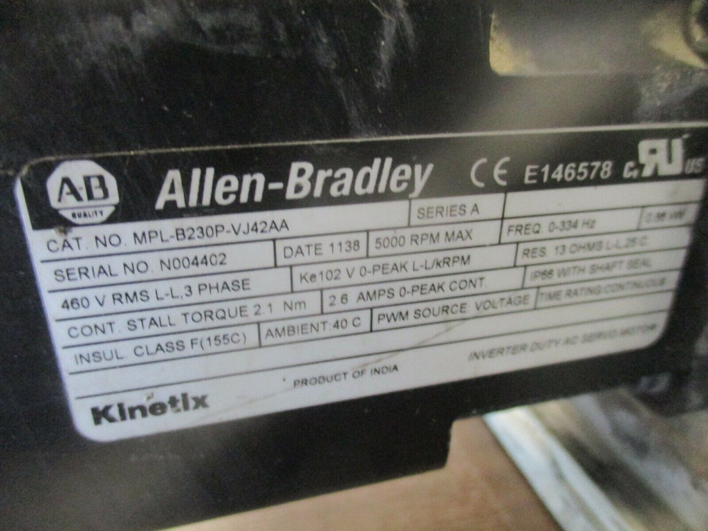 Allen-Bradley Kinetix AC Servo Motor MPL-B230P-VJ42AA Ser. A 0...