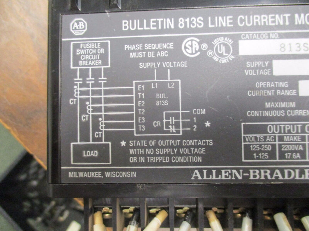 Allen-Bradley Line Current Monitor Relay 813S-COBM 480V 60Hz 5A Used