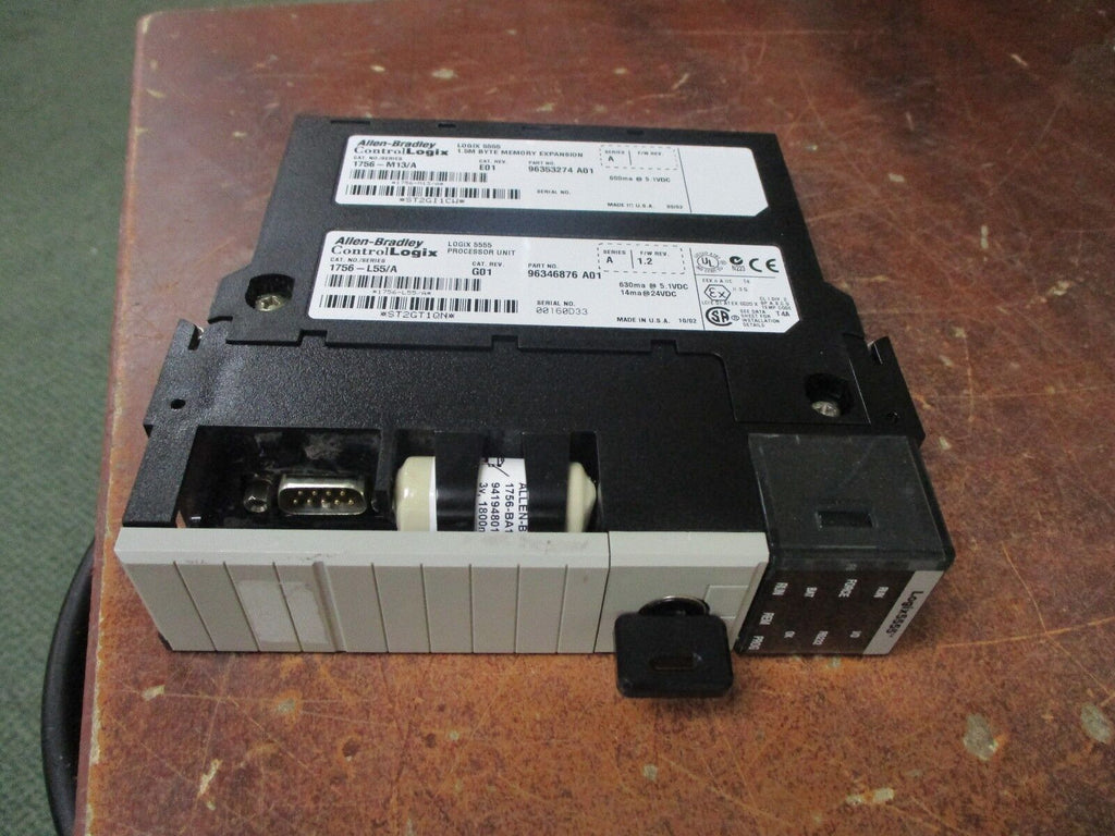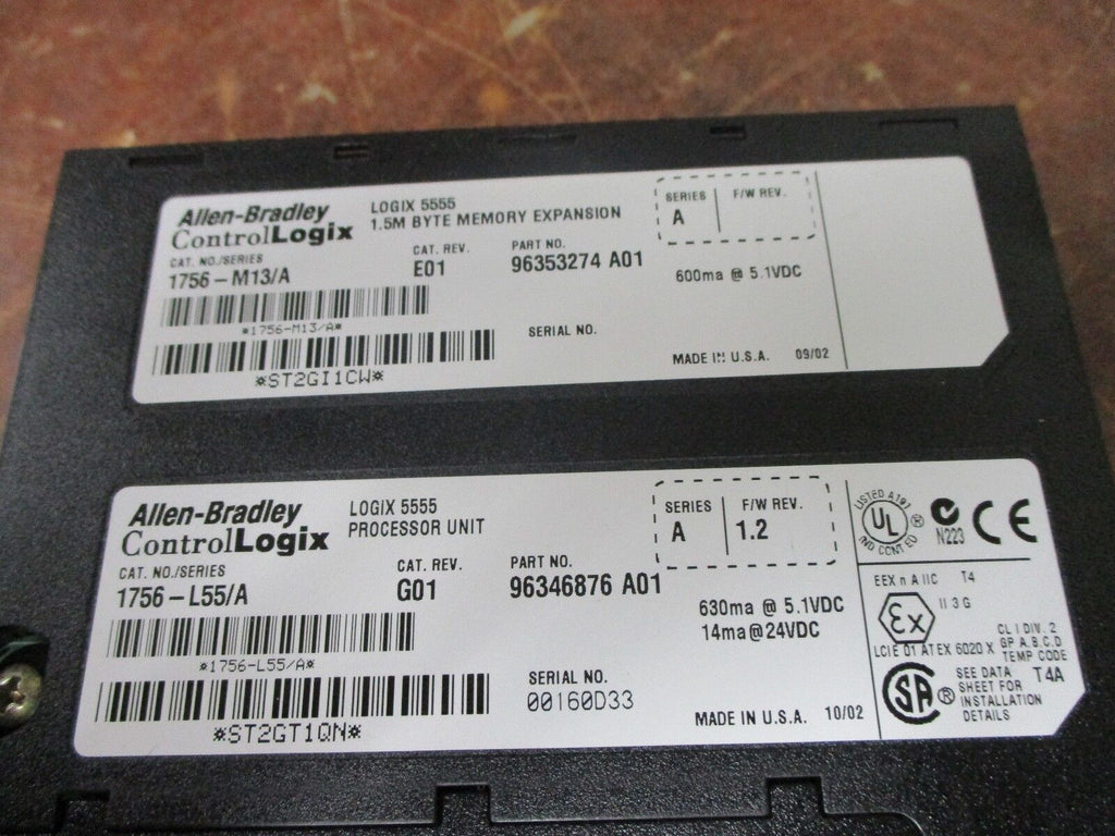Allen-Bradley Logix 5555 Processor Unit & Memory Expansion 1756-M13/A 1756-L55/A1.5M memoryF/W 1.2UsedLOC# 20G3-44- Logix 5555 Processor Unit & Memory Expansion
