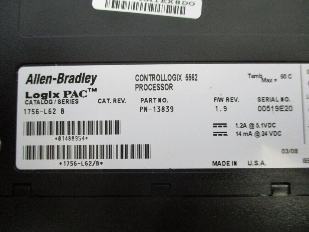 Allen-Bradley Logix PAC ControlLogix 4MB Memory Controller 1756-L62 Ser B Used