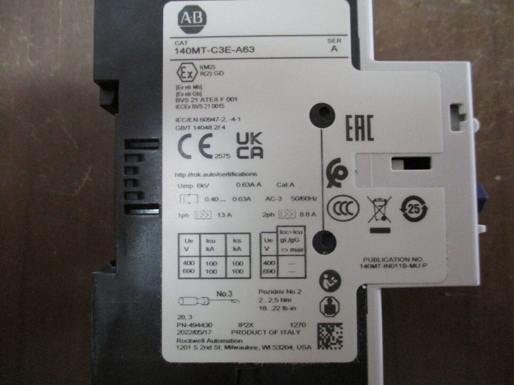 Allen-Bradley Manual Motor Protector 140MT-C3E-A63 Ser. A Trip...