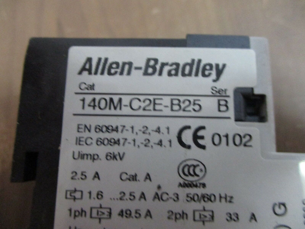 Allen-Bradley Manual Starter 140M-C2E-B25 Range: 1.6-2.5A Used Condition: UsedMPN: 140M-C2E-B25Brand: Allen-BradleyAmperage: 1.6 to 2.5 amps Allen-Bradley Manual Starter 140M-C2E-B25 Range: 1.6-2.5A Used Allen-Bradley Manual Starter Part #: 140M-C2E-B25 Range: 1.6-2.5A UsedLoc: 20F2-30 Allen-Bradley Manual Starter Part #: 140M-C2E-B25 Range: 1.6-2.5A Uséd Loc: 20F2-30
