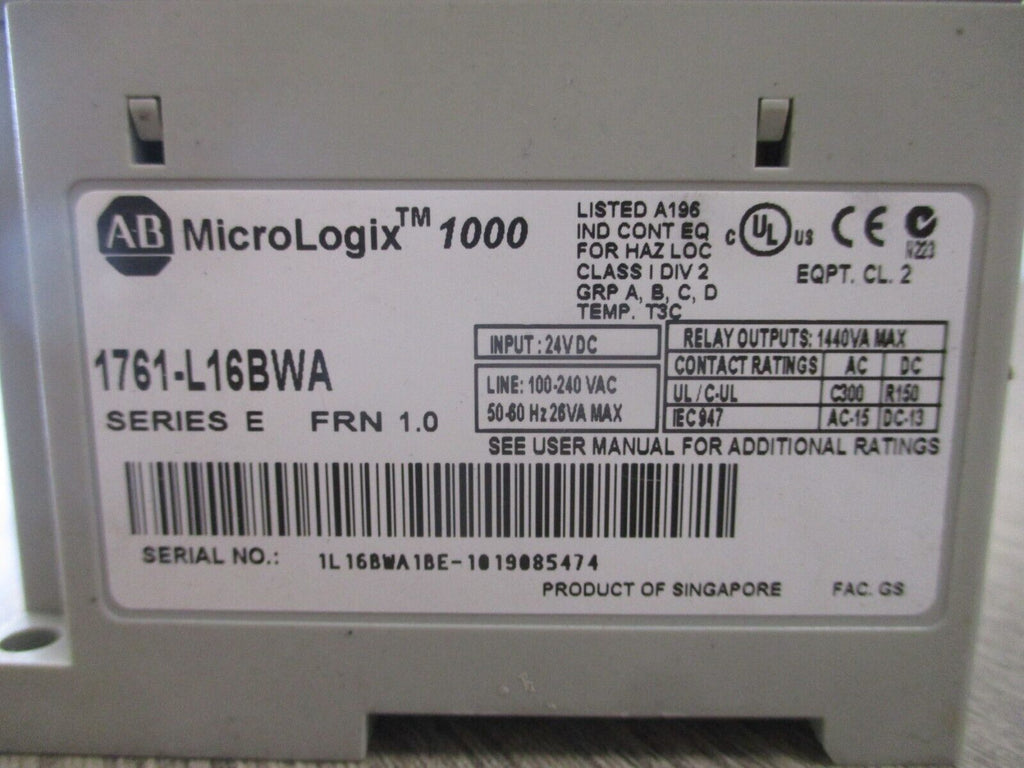 Allen-Bradley MicroLogix 100 Controller 1761-L16BWA Ser. E FRN 1.0 Used_x000D_ Condition: UsedBrand: Allen-BradleyController Platform: MicroLogix100MPN: 1761-L16BWAModel: Allen-Bradley MicroLogix 100 Allen-Bradley MicroLogix 100 Controller 1761-L16BWA Ser. E FRN 1.0 Used Allen-Bradley MicroLogix 100 Controller Part #: 1761-L16BWA Ser. E FRN 1.0 UsedLOC: 27E3-2 Allen-Bradley MicroLogix 100 Controller Part #: 1761-L16BWA Ser. E FRN 1.0 Uséd LOC: 27E3-2