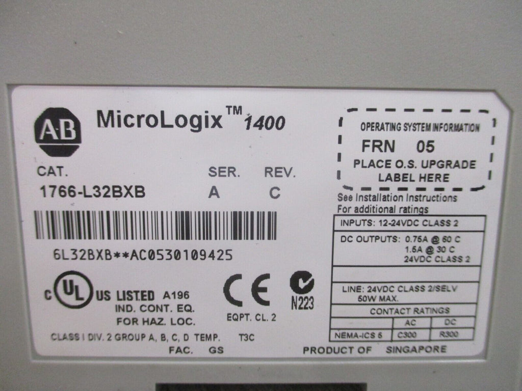 Allen-Bradley MicroLogix 1400 Controller 1766-L32BXB Ser. A Rev. C FRN. 05 Used