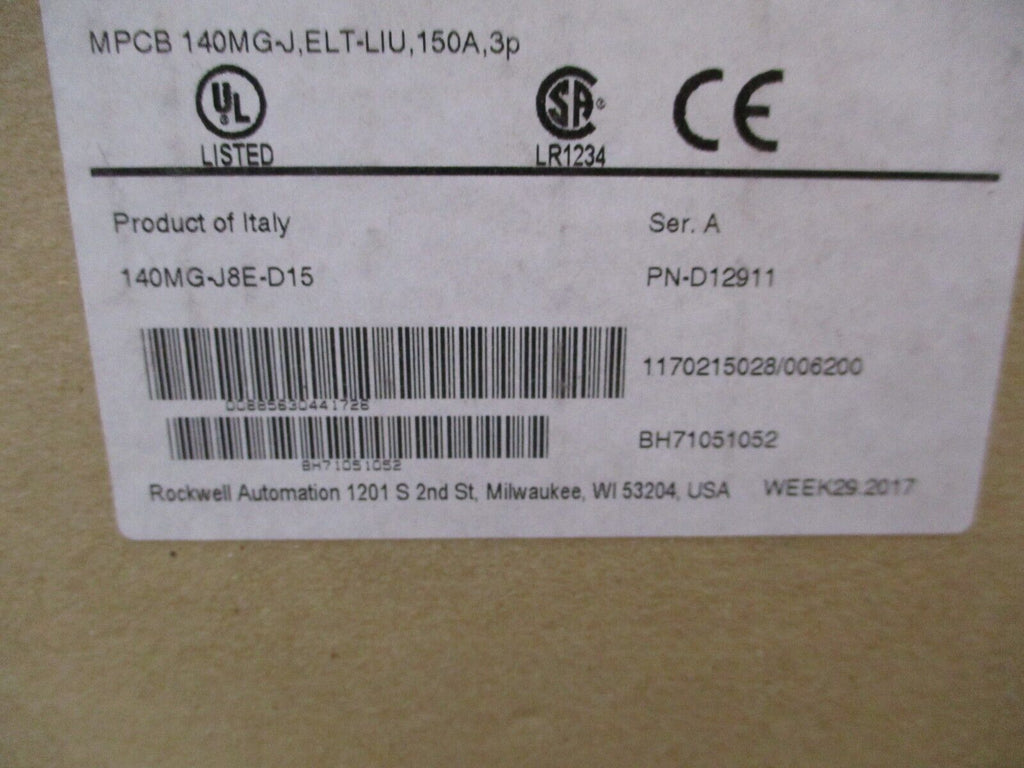Allen-Bradley Motor Protector Circuit Breaker 140MG-J8E-D15 Ser. A 150A 480V 3P