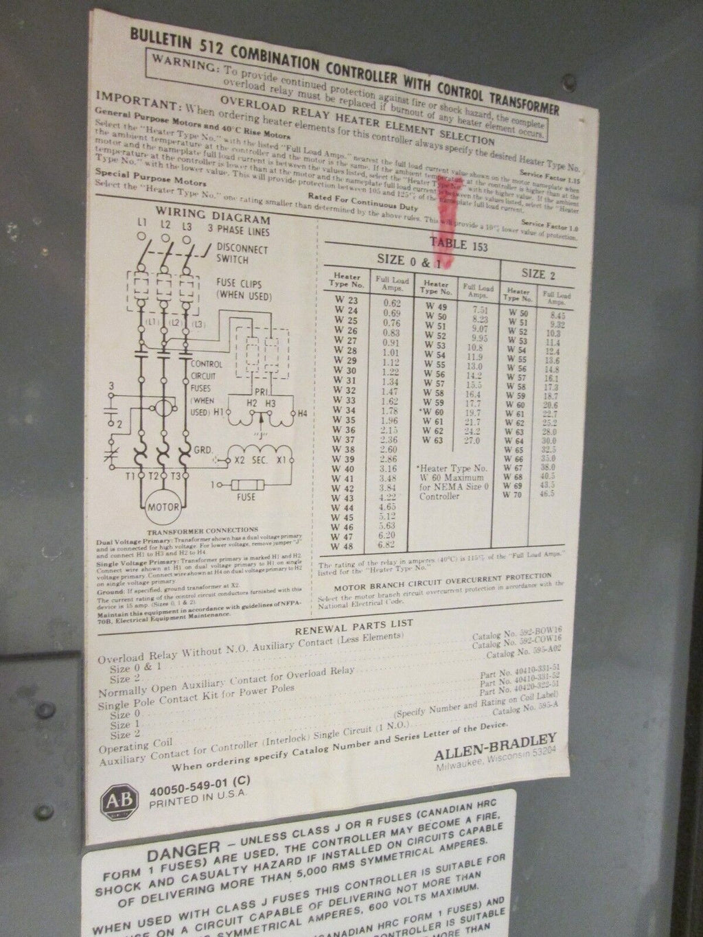 Allen-Bradley Non-Fusible Combination 512-BAB-3-4R-6-24 Size 1 120V Coil Used_x000D_ Condition: UsedBrand: Allen-BradleyModel: Non-Fusible CombinationMPN: 512-BAB-3-4R-6-24 Allen-Bradley Non-Fusible Combination 512-BAB-3-4R-6-24 Size 1 120V Coil Used Allen-Bradley Non-Fusible Combination 512-BAB-3-4R-6-24 Size 1 120V Coil UsedLOC# 8D4-75 Allen-Bradley Non-Fusible Combination 512-BAB-3-4R-6-24 Size 1 120V Coil Uséd LOC# 8D4-75