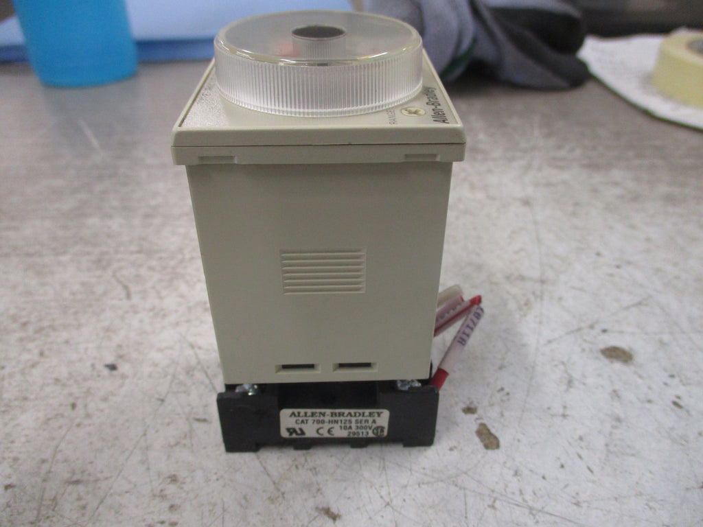 Allen-Bradley On Delay Timing Relay 700-HRM12TA17 Ser. B 100-240V 50/60Hz W/Base Used LOC 60D3-30