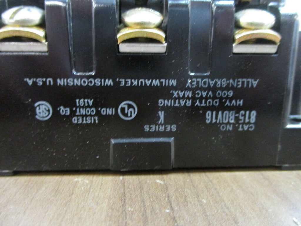 Allen-Bradley Overload Relay Panel 815-B0V16 Ser. K Size 1 New Surplus_x000D_ Condition: New – Open boxType: Overload Relay Pan
