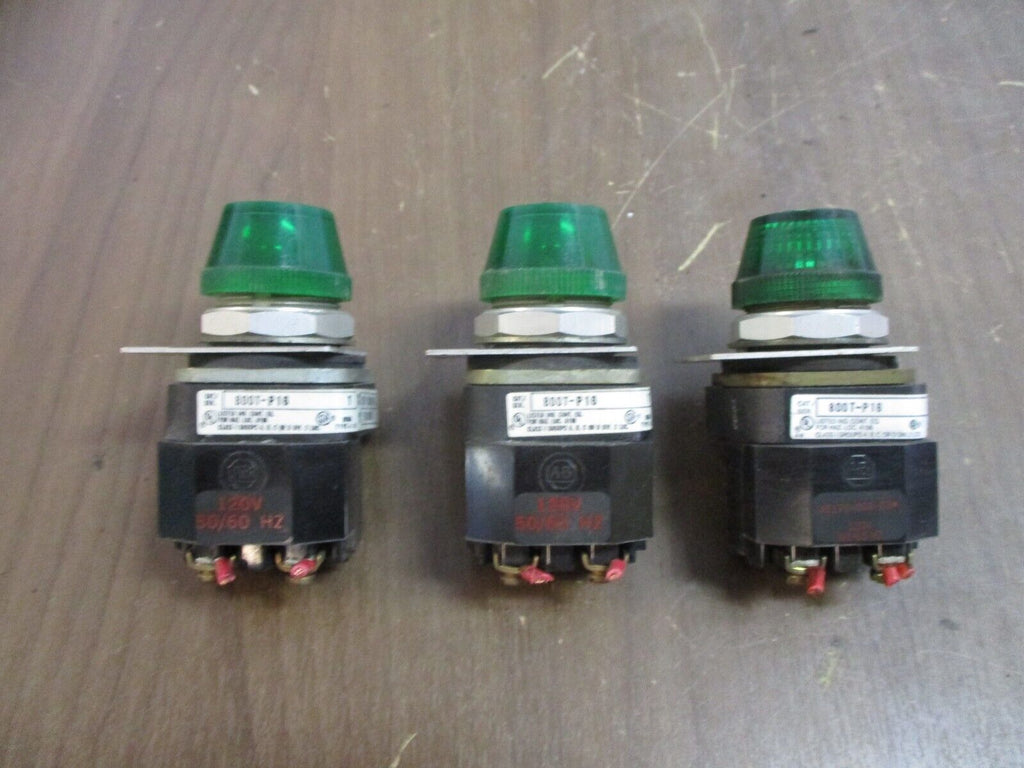 Allen-Bradley Pilot Light 800T-P16 Ser. T Nema 4, 13 Green On *Lot of 3* Used