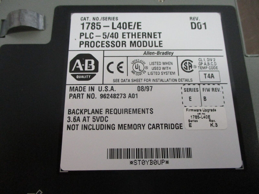Allen-Bradley PLC-5/40 Ethernet Processor Module 1785-L40E/E Rev. D01 Ser. E