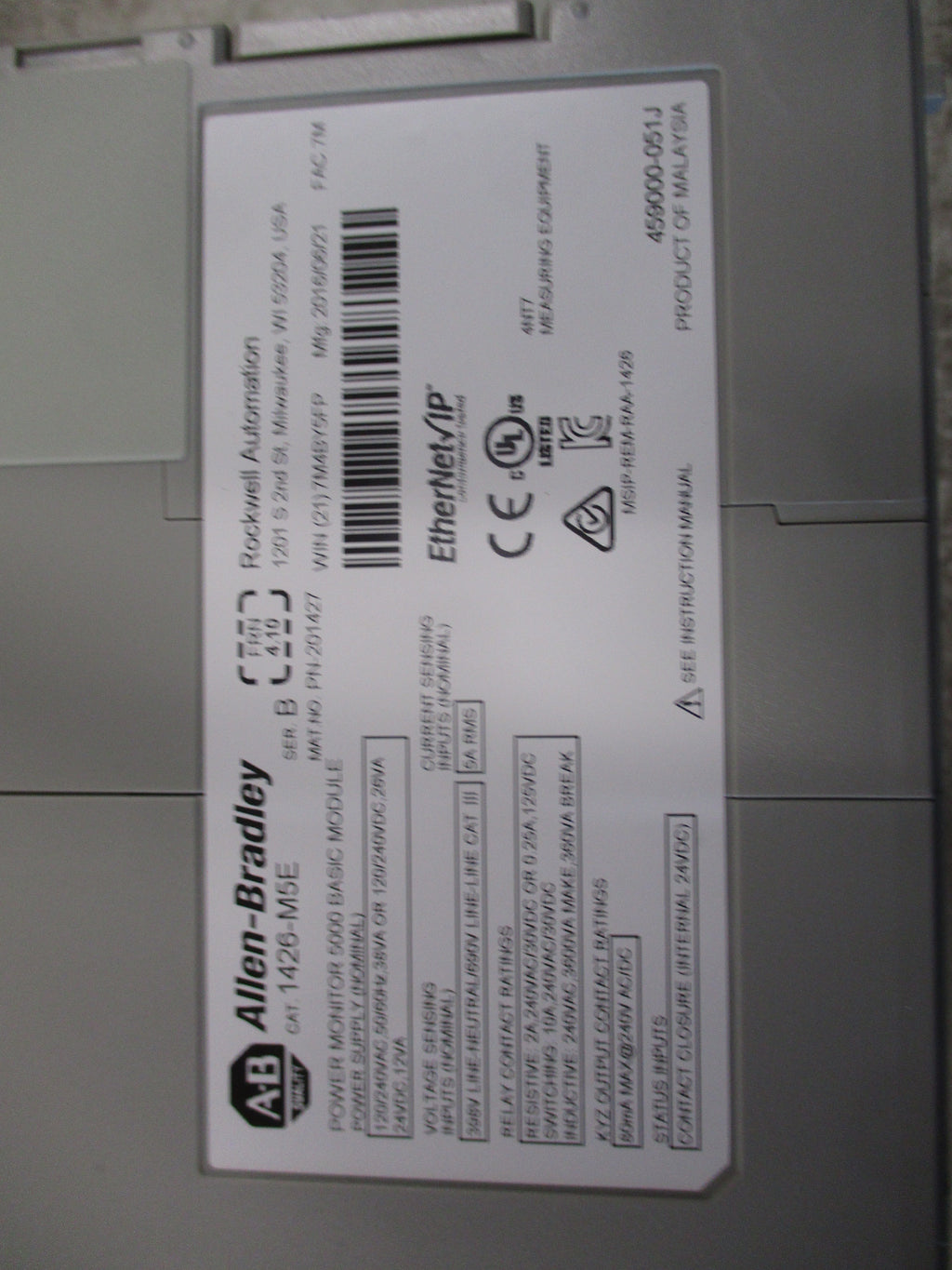 Allen-Bradley Power Monitor 5000 Basic Module 1426-M5E Ser. B FRN 4.10 Used LOC 56H4-5