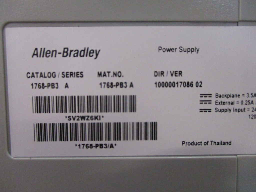 Allen-Bradley Power Supply 1768-PB3 Ser. A Used Condition: UsedMPN: 1768-PB3Brand: Allen-Bradley Allen-Bradley Power Supply 1768-PB3 Ser. A Used Allen-Bradley Power Supply Part #: 1768-PB3 Ser. A Used Loc: 23F2-8 Allen-Bradley Power Supply Part #: 1768-PB3 Ser. A Uséd Loc: 23F2-8