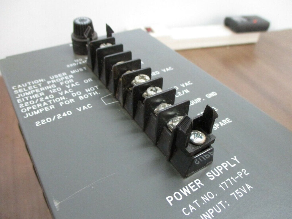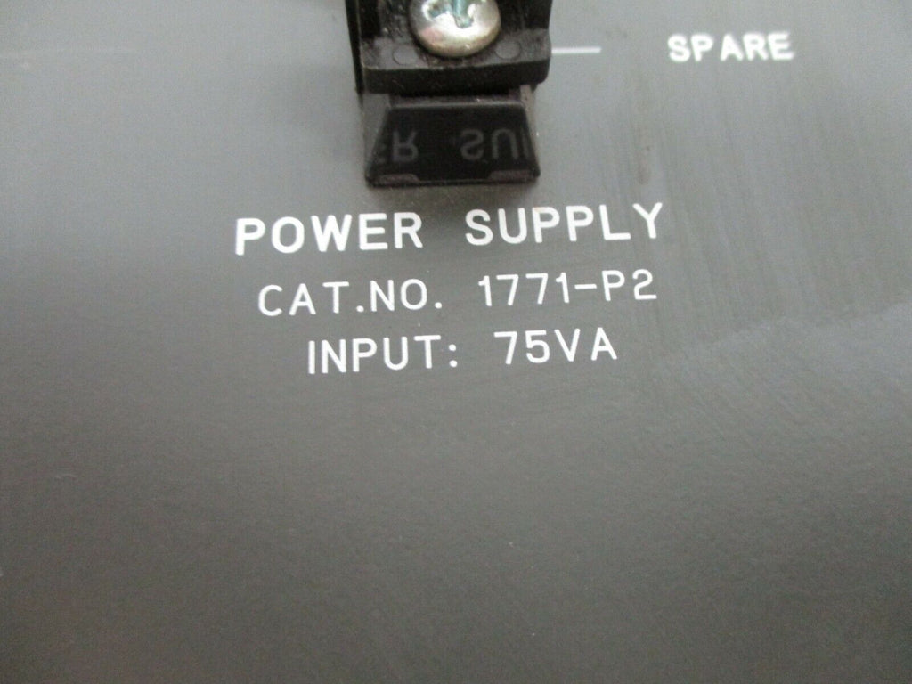 Allen-Bradley Power Supply 1771-P2 75VA 120/220V 50/60Hz 1/0.5A Used Condition: UsedMaximum Voltage Output: 220 VMaximum Current Output: 1 AMPN: 1771-P2Brand: Allen-Bradley Allen-Bradley Power Supply 1771-P2 75VA 120/220V 50/60Hz 1/0.5A Used Allen-Bradley Power Supply Part#: 1771-P275 VA 120/220 V 50/60Hz 1/0.5A *No Terminal Cover*Usedloc: AB11-2583 / 16B3-27 Allen-Bradley Power Supply Part#: 1771-P2 75 VA 120/220 V 50/60Hz 1/0.5A *No Terminal Cover* Uséd loc: AB11-2583 / 16B3-27