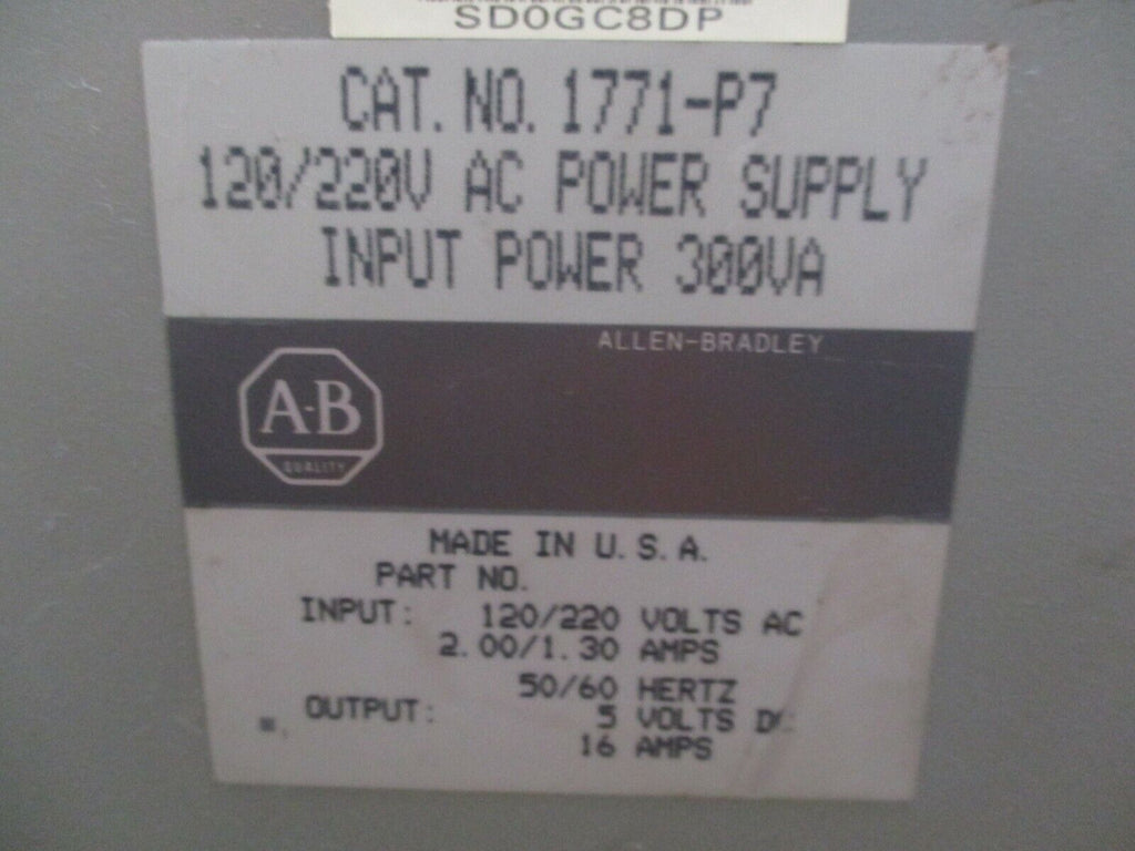 Allen-Bradley Power Supply Part #: 1771-P7 Input: 120/220V 2.00/1.30A 50/60Hz Output: 5V 16A Used LOC 24F3-51