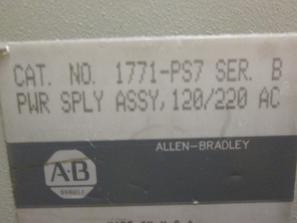 Allen-Bradley Power Supply Assembly 1771-PS7 Used Condition: UsedMPN: 1771-PS7Brand: Allen-Bradley Allen-Bradley Power Supply Assembly 1771-PS7 Used Allen-Bradley Power Supply Assembly Part # 1771-PS7 Input:120/220V2.4/1.3A50/60HzOutput:5VDC 8AUsedLOC 17F1-6 / AB13H4 Allen-Bradley Power Supply Assembly Part # 1771-PS7 Input: 120/220V 2.4/1.3A 50/60Hz Output: 5VDC 8A Uséd LOC 17F1-6 / AB13H4
