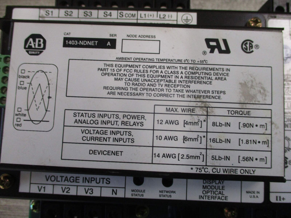 Allen-Bradley Powermonitor II Power Meter 1403-MM05A Ser. B FRN: 2.10 W/1403-NDNET Used_x000D_ Allen-Bradley Powermonitor II Power Meter 1403-MM05A Ser. B FRN: 2.10 W/1403-NDNET Used LOC 60G5-3
