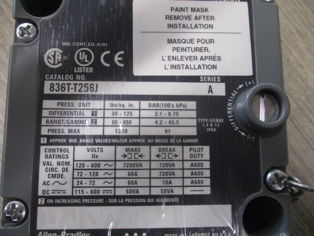 Allen-Bradley Pressure Control Part #: 836T-T256J Ser. A Adj. : 60-650 PSI Diet. : 30-125 PSI New SurplusLOC: 27D1-15- Part #: 836T-T256J