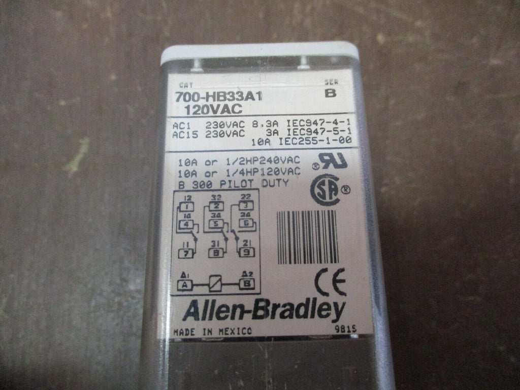 Allen-Bradley Relay 700-HB33A1 Ser. B 120V Coil *Lot of 4* Used Condition: UsedBrand: Allen-BradleyCoil Voltage: 101-150 VMPN: 700-HB33A1 Allen-Bradley Relay 700-HB33A1 Ser. B 120V Coil *Lot of 4* Used Allen-Bradley Relay Part #: 700-HB33A1 Ser. B 120 V Coil *Lot of 4* Used Loc: 21B3-49 Allen-Bradley Relay Part #: 700-HB33A1 Ser. B 120 V Coil *Lot of 4* Uséd Loc: 21B3-49