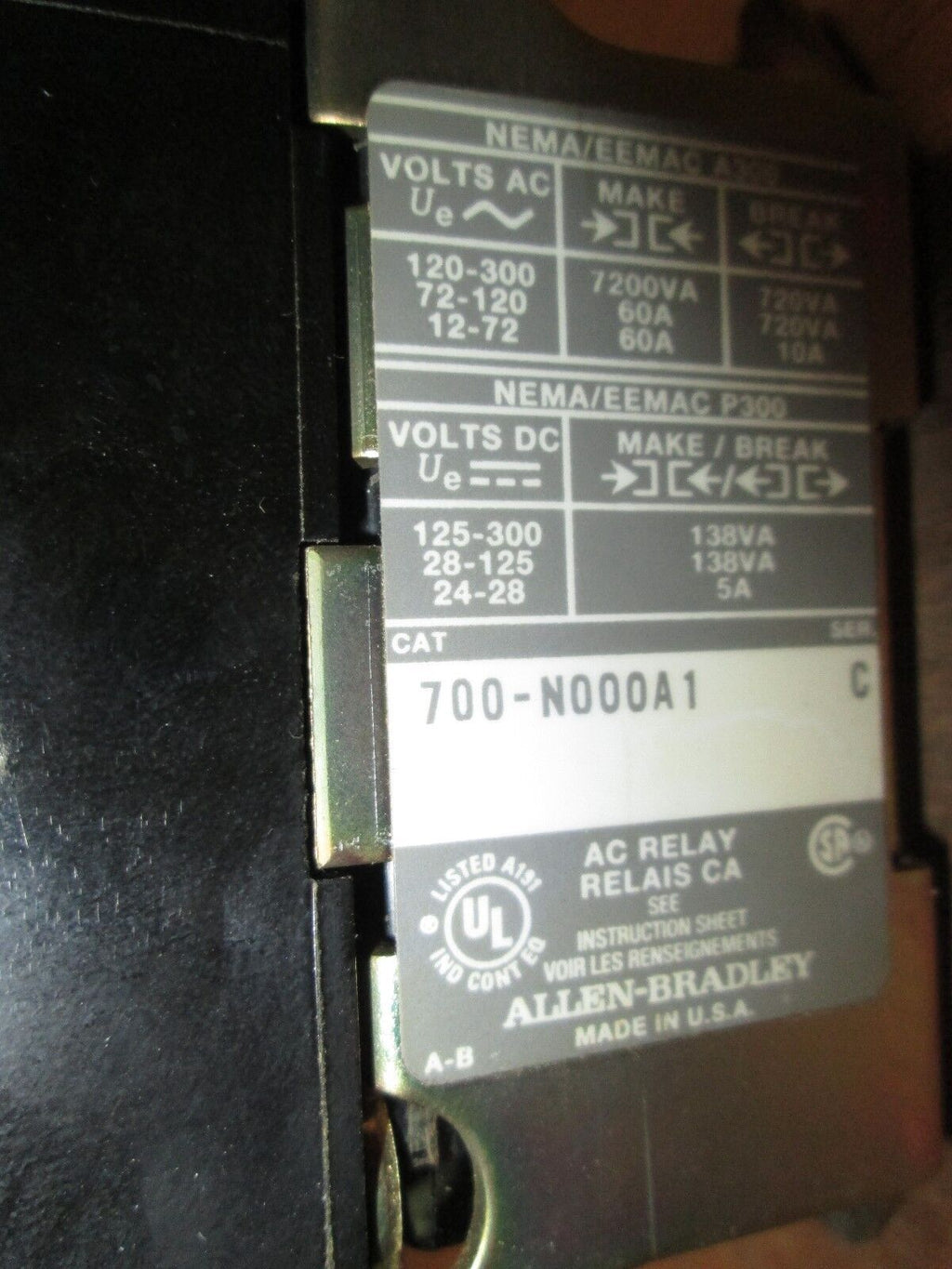 Allen-Bradley Relay 700-N000A1 120V Coil Used_x000D_ Condition...