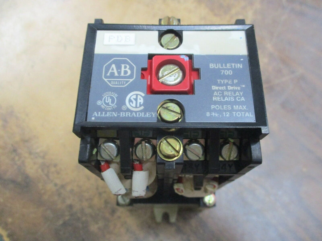 Allen-Bradley Relay w/ Aux Contact Block 700-P000A1 115-120V Coil Used Condition: UsedMPN: 700-P000A1Brand: Allen-Bradley Allen-Bradley Relay w/ Aux Contact Block 700-P000A1 115-120V Coil Used Allen-Bradley Relay w/ Aux Contact Block Part #: 700-P000A1 115-120V Coil UsedLOC 20F5-43 Allen-Bradley Relay w/ Aux Contact Block Part #: 700-P000A1 115-120V Coil Uséd LOC 20F5-43