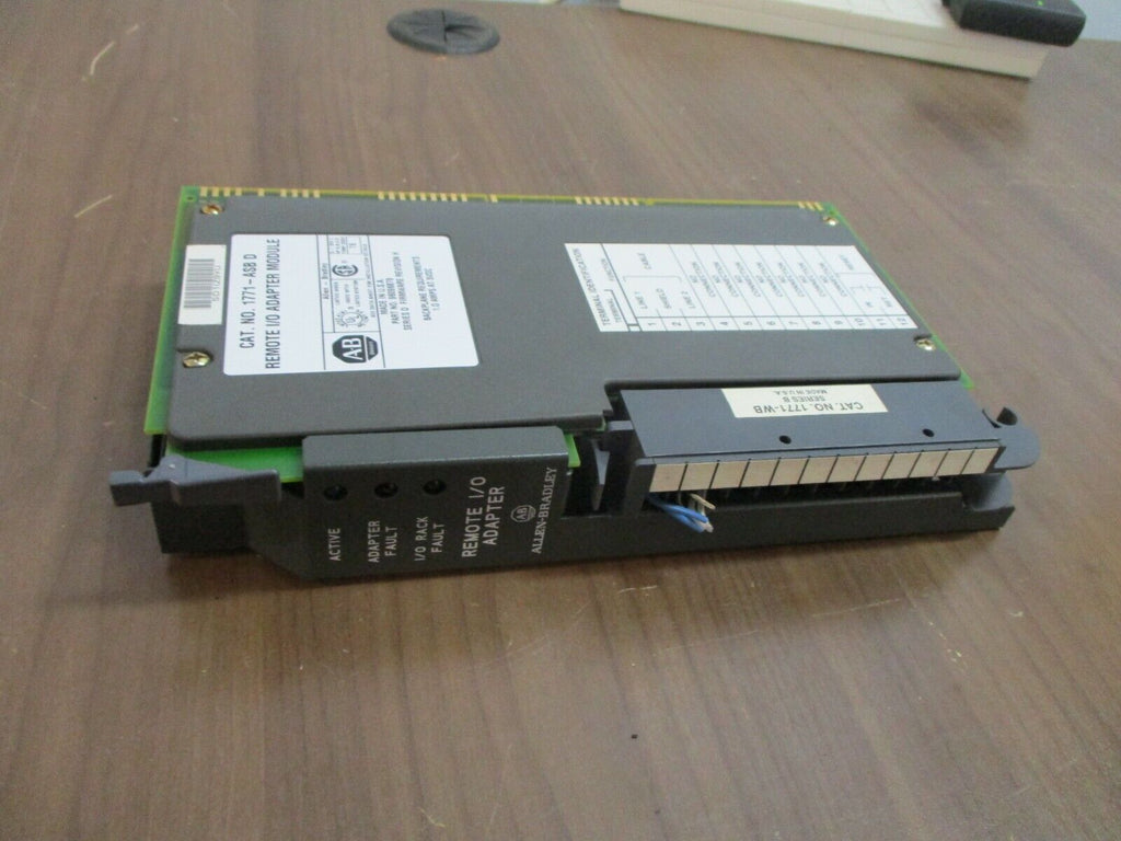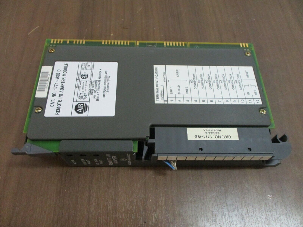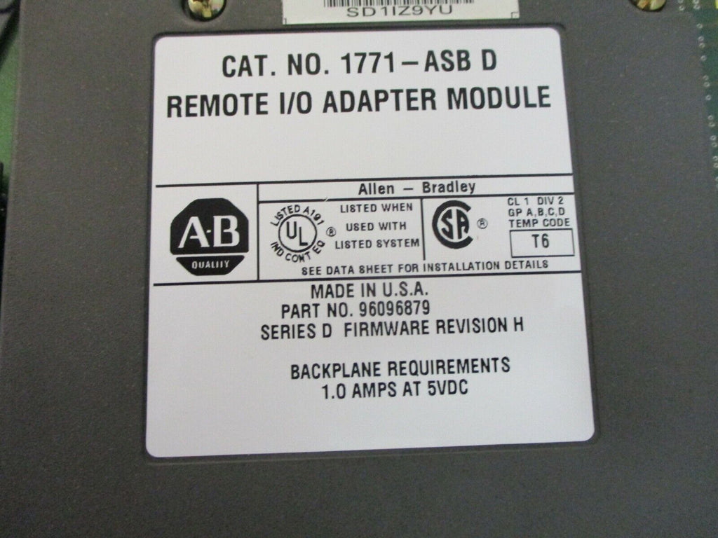 Allen-Bradley Remote I/O Adapter Module 1771-ASB D Ser. D F/W Rev. H Used_x000D_ Condition: UsedMPN: 177-ASB DBrand: Allen-BradleyType: I/O Adapter Module Allen-Bradley Remote I/O Adapter Module 1771-ASB D Ser. D F/W Rev. H Used Allen-Bradley Remote I/O Adapter Module Part#: 1771-ASB D Ser. D F/W Rev. H Used loc: 14F5-8 Allen-Bradley Remote I/O Adapter Module Part#: 1771-ASB D Ser. D F/W Rev. H Uséd loc: 14F5-8