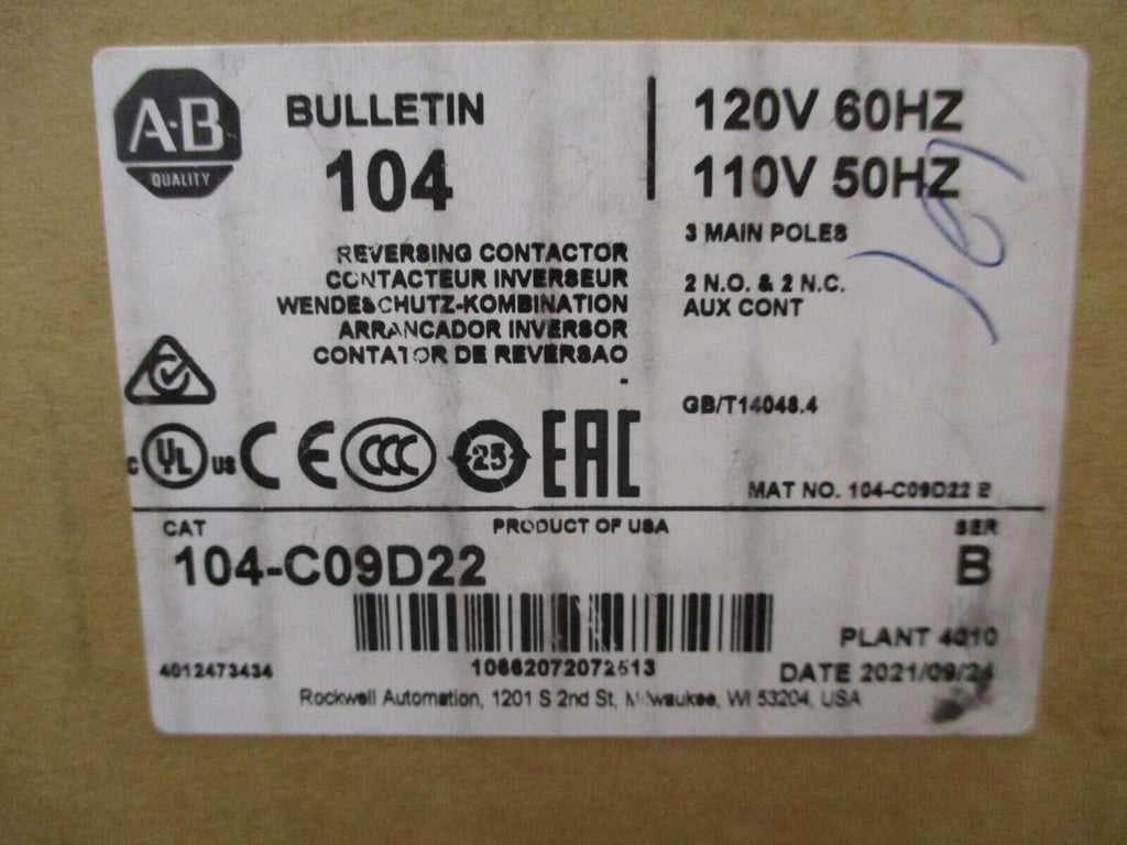 Allen-Bradley Reversing Contactor 104-C09D22 Ser. B 120V Coil New Surplus