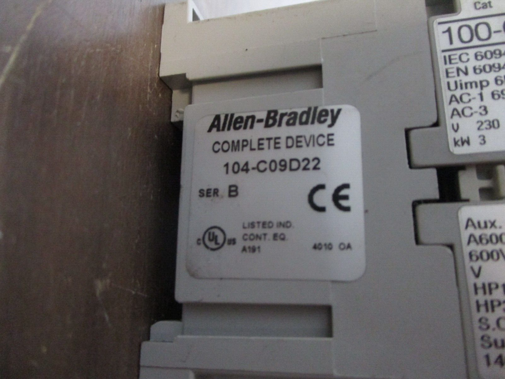 Allen-Bradley Reversing Contactor Part #: 104-C09D22 Ser. B 120 V Coil Trip: 3.2-16 A 600 V Used Loc: 23E3-43- Part #: 104-C09D22