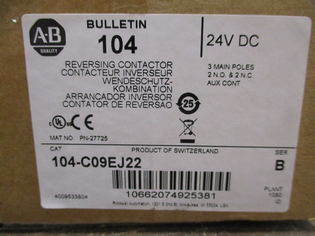 Allen-Bradley Reversing Contactor 104-C09EJ22 Ser. B 24VDC Coil New Surplus